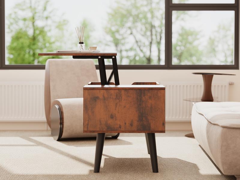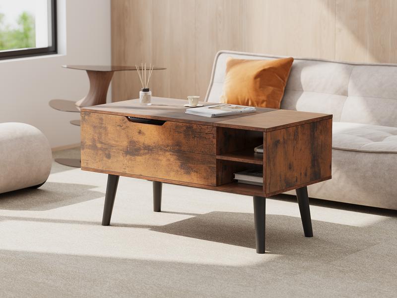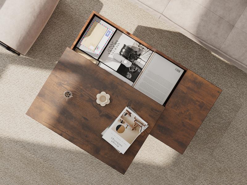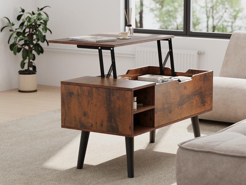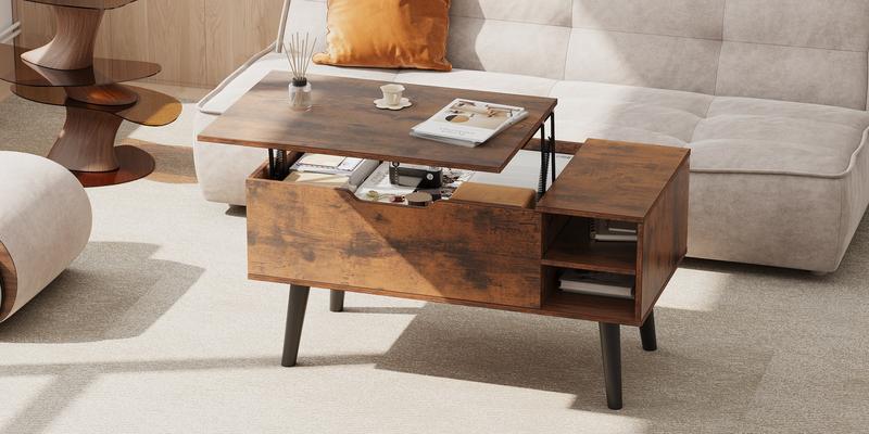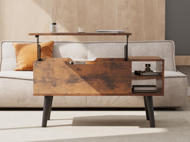 Elevate Your Home Decor with the YITAHOME Rustic Brown Adjustable Lift Top Coffee Table - Featuring Hidden Storage and Movable Divider!