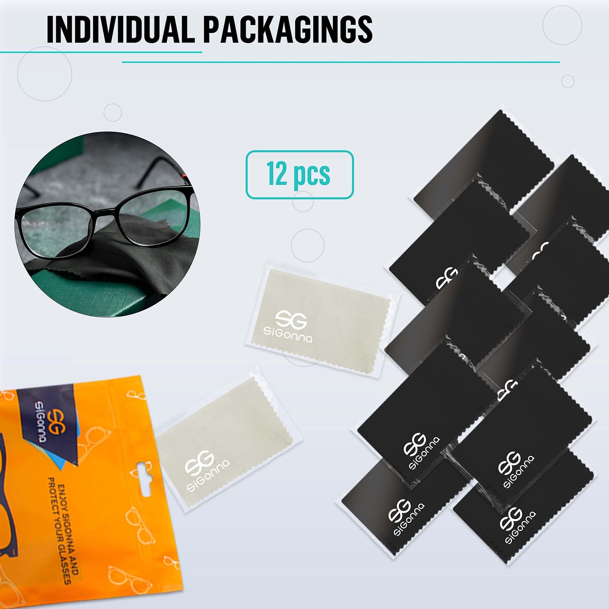 Full Print Design - our microfiber eyeglass cleaning cloth set comes with 12 individually packaged clothes in black and gray colors. The glasses of wipe cloth are perfect for travel and long-term use.